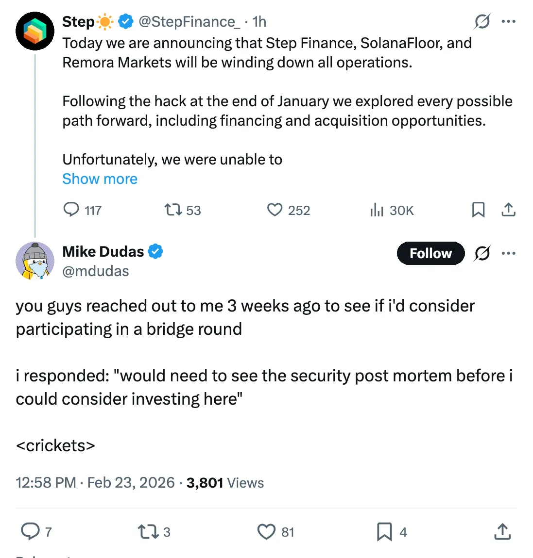 Tweet by Mike Dudas